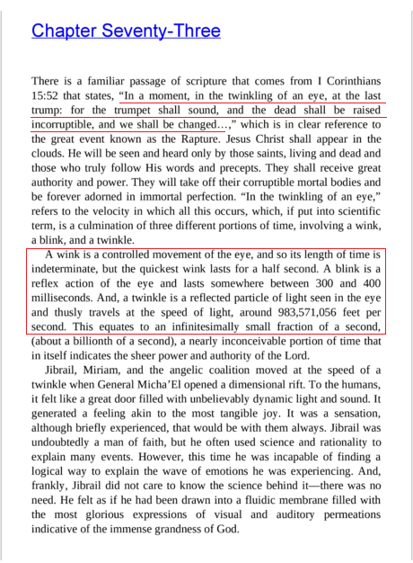[بناءاً على ما سبق فإن سرعة طرفة العين تساوي سرعة الضوء، وحيث أن